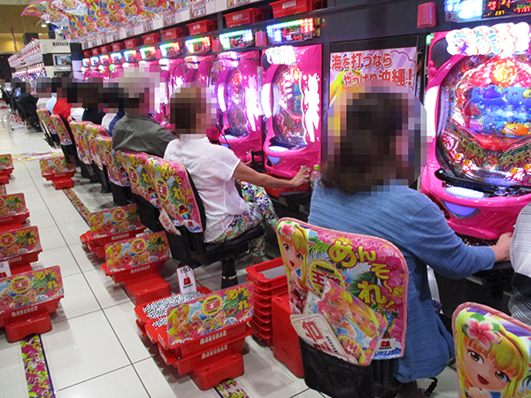 14時過ぎの4円パチンコでは、「CRスーパー海物語IN沖縄4」などの海物語シリーズや「CRぱちんこ必殺仕事人Ⅴ」が活況。機種の性能を上手く引き出しているプレイヤーも目にした。