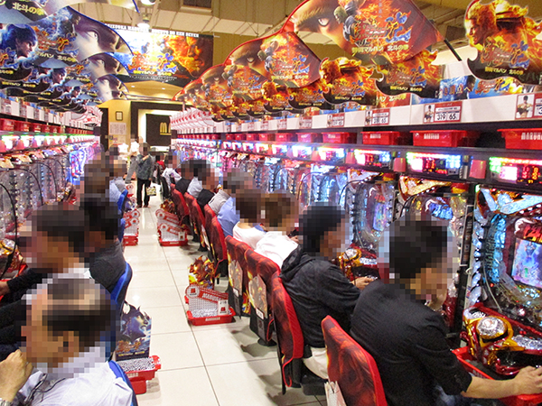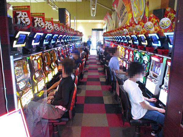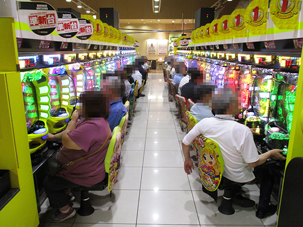 取材日の店内には既に多くのプレイヤーが集まっており、パチンコ・パチスロの各シマからにぎわいが感じられた。