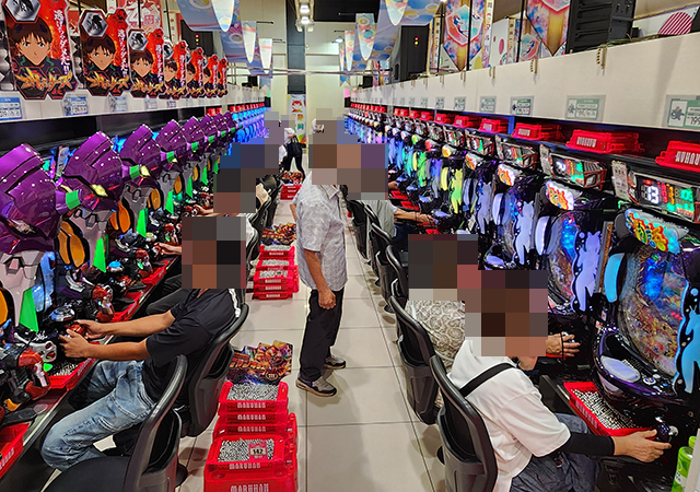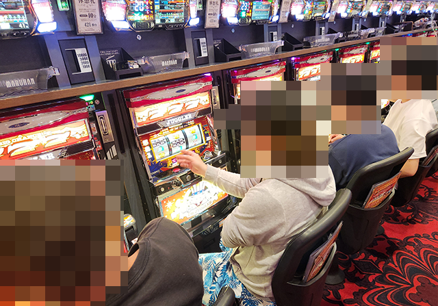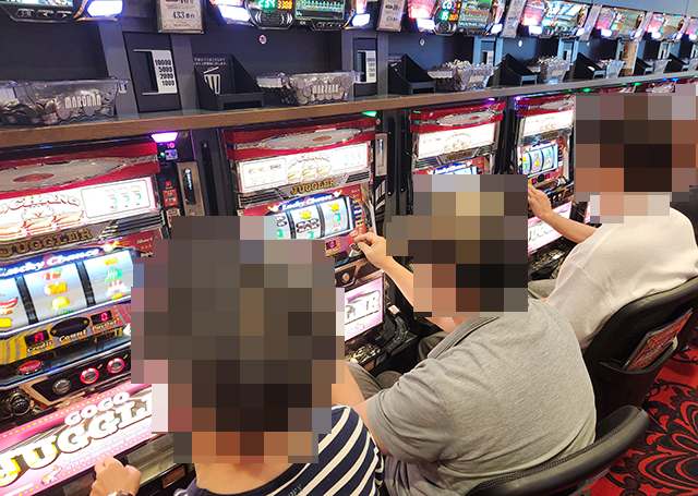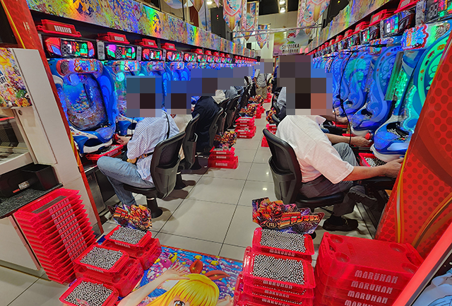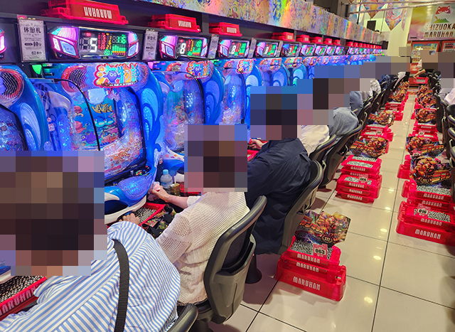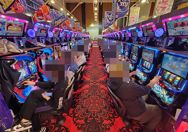 パチンコ、パチスロともに笑顔が広がっていた「マルハン荒田島店」。