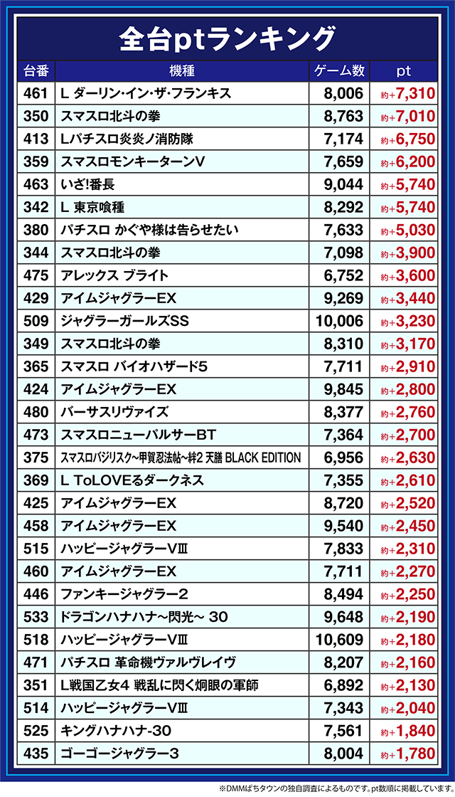 ※なお、本記事中のデータは全てDMMぱちタウンの独自調査によるものです