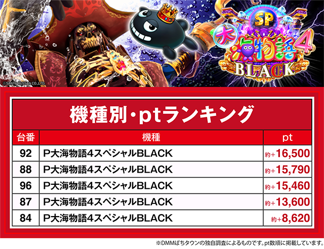 「P大海物語4スペシャルBLACK」の4台も約+13,000ptを上回った。
