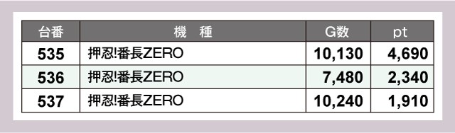 注目を集めたのが『押忍!番長ZERO』。3台すべて4桁pt獲得の好調台となっており、周囲の注目を集めていた。