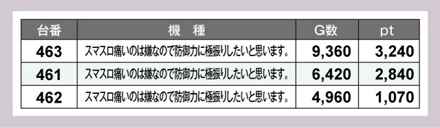 さらに『スマスロ痛いのは嫌なので防御力に極振りしたいと思います。』と『押忍!番長ZERO』は全台がプラスの微笑ましい状況。多くのプレイヤーが納得の遊技をできていたようだ。
