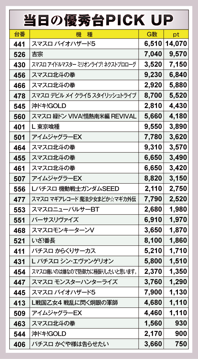 ※差枚pt順に掲載しています。