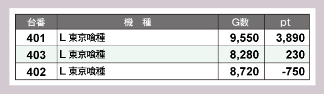 『L 東京喰種』と『スマスロ バイオハザード5』は設置台の過半数がプラスptで、トータルptでも大きくプラスとなっている。