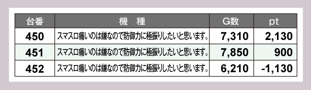 『L 東京喰種』と『スマスロ痛いのは嫌なので防御力に極振りしたいと思います。』はいずれも3台中2台がプラスpt。稼働も高く、人気と実力を十分に示していたようだ。
