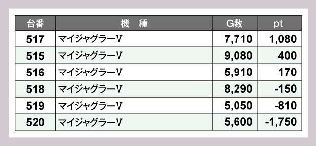 ※差枚pt順に掲載しています。