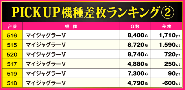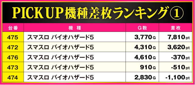 今回のPICK UP機種は全3機種で、ハイスコアを記録した『スマスロ バイオハザード5』以外にも多数の好調台を確認。『マイジャグラーⅤ』は全6台中5台、『パチスロ甲鉄城のカバネリ』は全6台中4台がプラス差枚で実戦を終える見事な結果を残しているだけに、3機種のファンにとっては大満足の一日となったに違いないだろう。