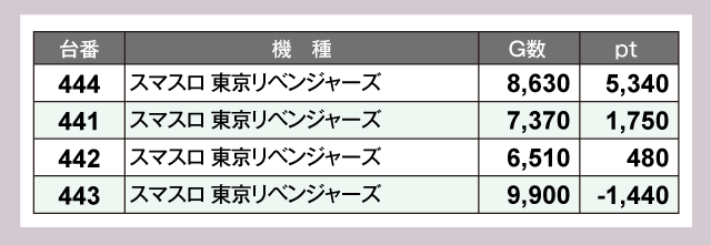 『L主役は銭形5』と『スマスロ 東京リベンジャーズ』が大盛り上がり。5,000ptオーバーや8,000ptオーバーの台も飛びだし、実力を十分に発揮していた。