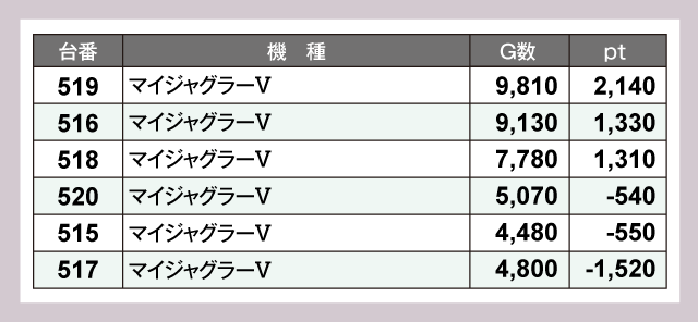 ※差枚pt順に掲載しています。