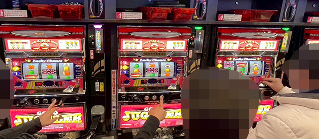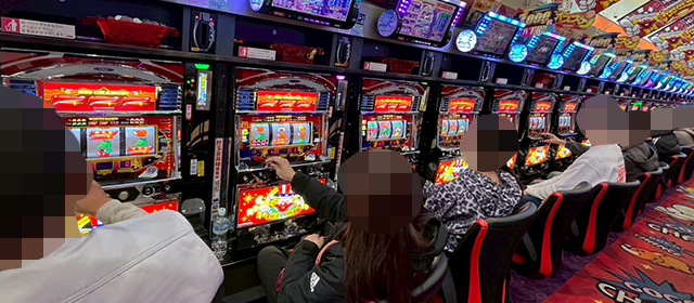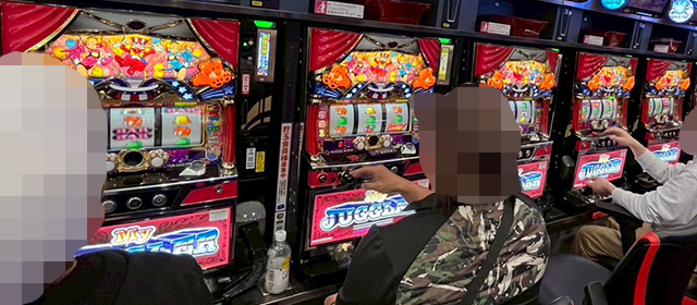 『マイジャグラーⅤ』と『ゴーゴージャグラー3』、『ネオアイムジャグラーEX』は稼働が高い台を中心に好結果。満足げに打ちこむプレイヤーの姿を確認している。