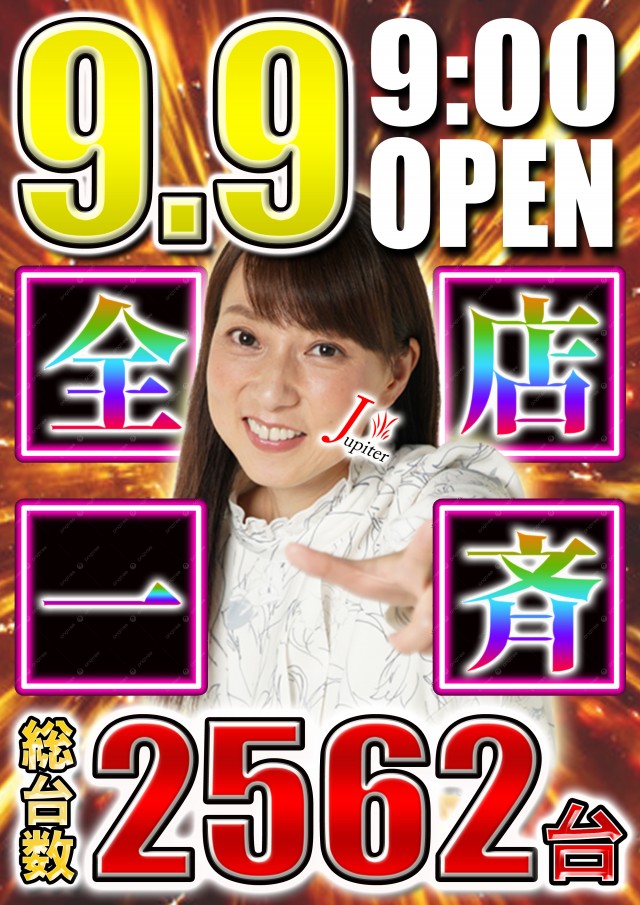 明日、9月9日 新台入替&ジュピターグループ一斉9:00開店
