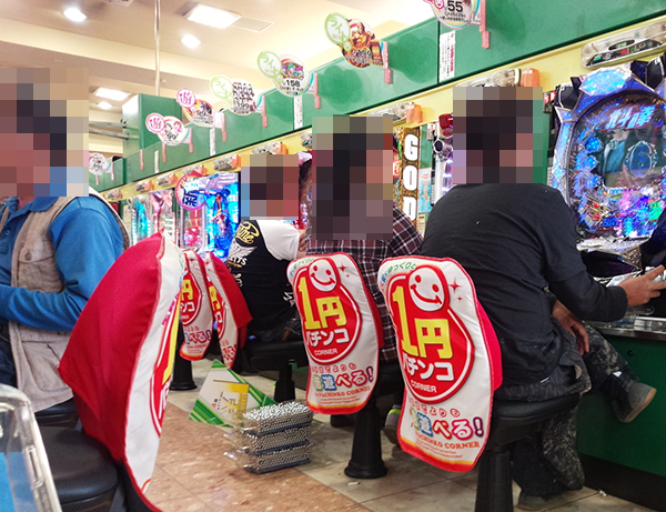 低貸し玉コーナーでは、とくに1円パチンコの盛況ぶりが目立っていた印象。