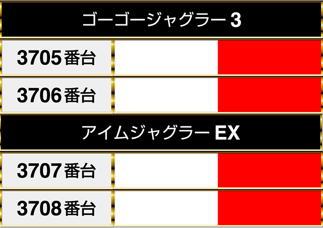『ゴーゴージャグラー3』の2台は『アイムジャグラーEX』の2台と連なってプラスptとなった。