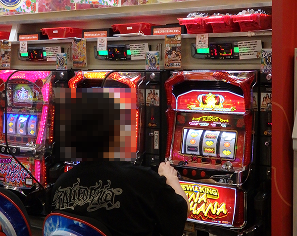 15時を過ぎた頃の20円パチスロでは、新台の「パチスロ北斗の拳 修羅の国篇」が盛況。機種の特徴を活かしているような姿が多く、プレイヤーは大満足といった笑みを浮かべていた。