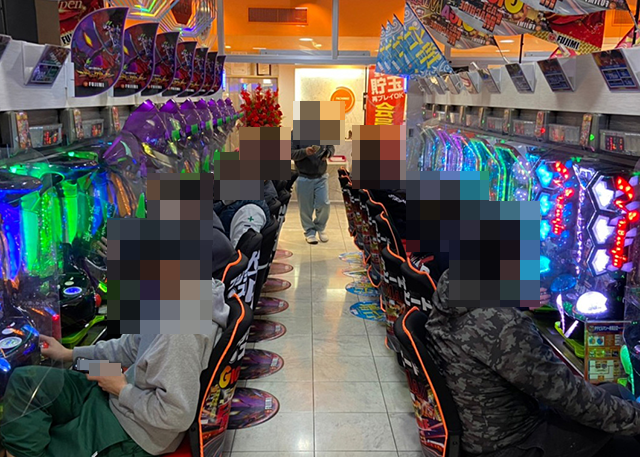 パチンココーナーではさまざまな機種が支持されており、笑顔が広がっていた。