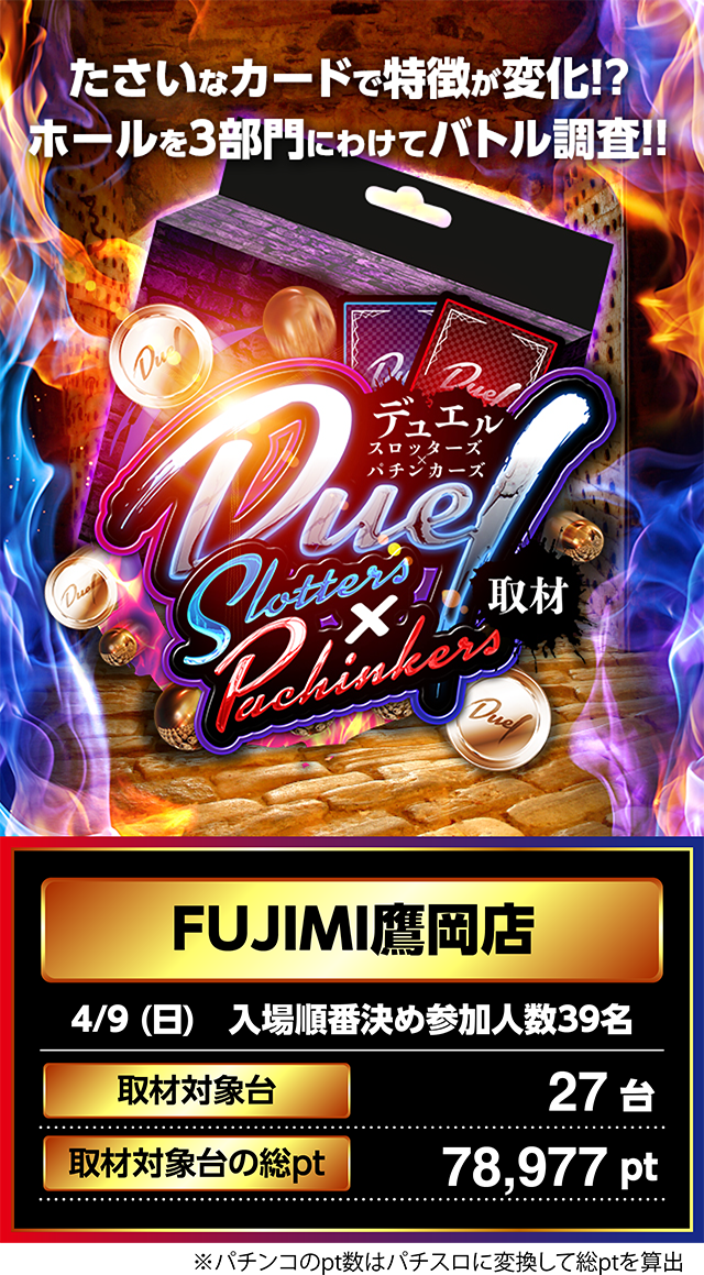 デュエルスロッターズ×パチンカーズ、4月9日に舞台となったのは「FUJIMI鷹岡店」。