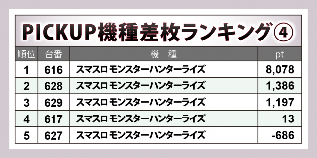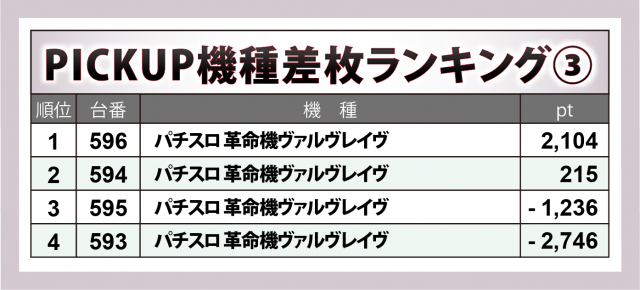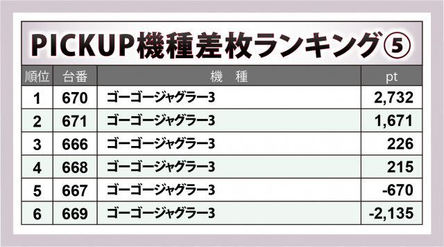 こちらではプラス台割合の高さや突出した成績が光った5つのマシンをクローズアップ。