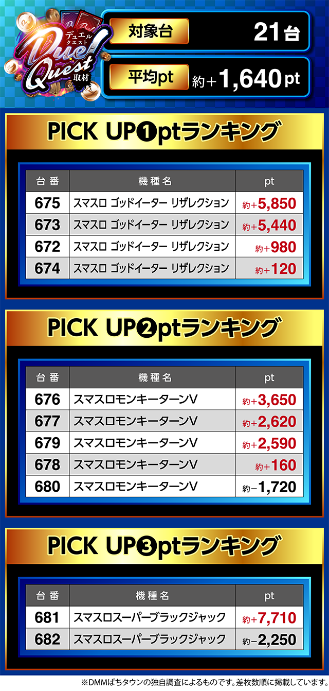 「スマスロスーパーブラックジャック」では、681番台が約+7,700ptとなった。