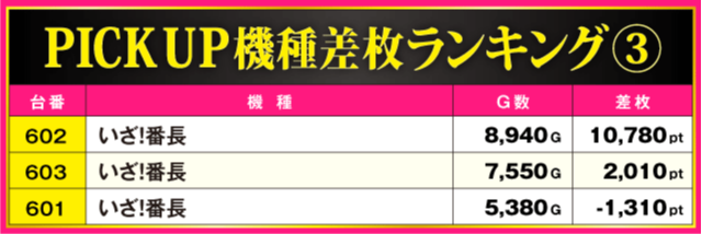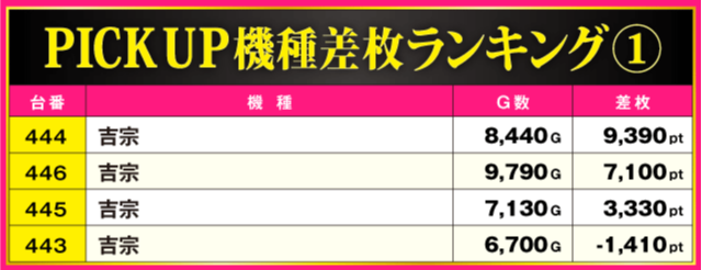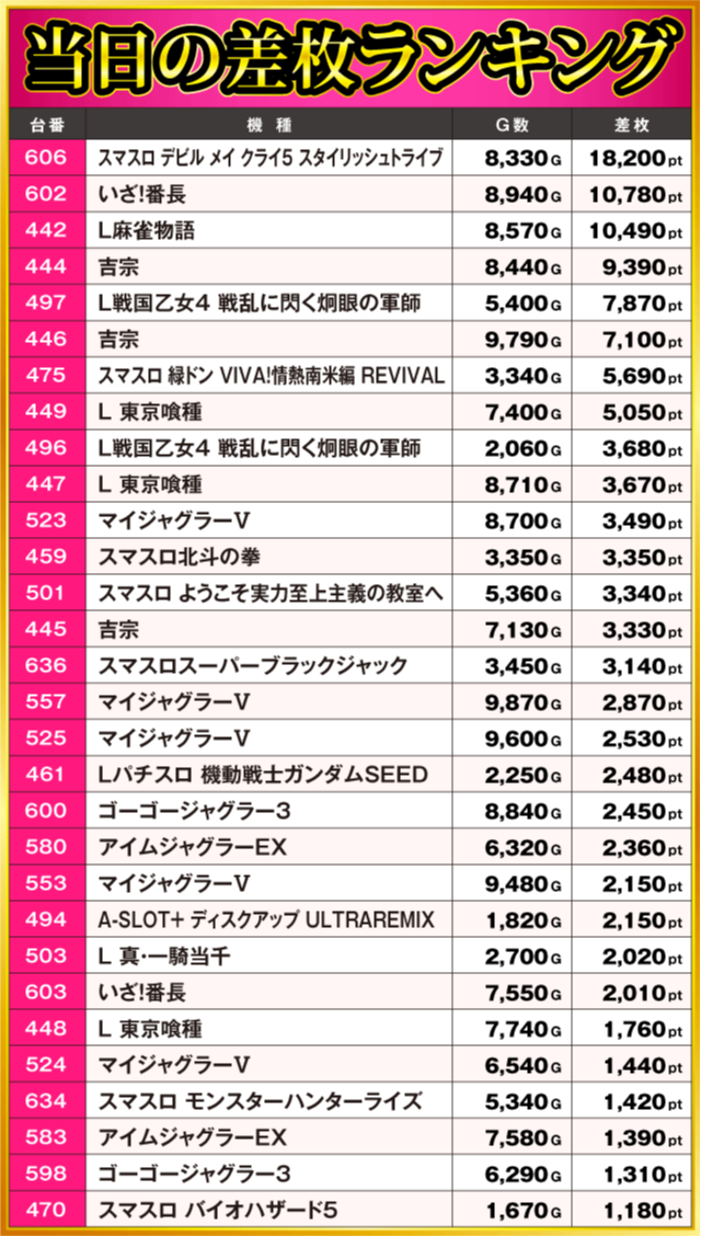 当日の差枚ランキング