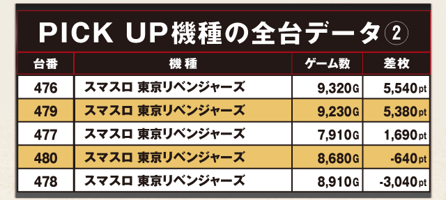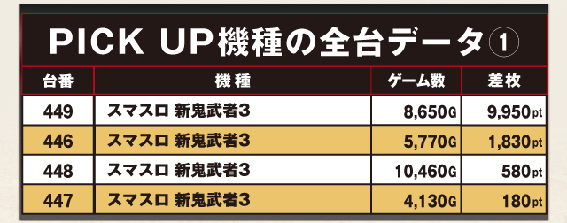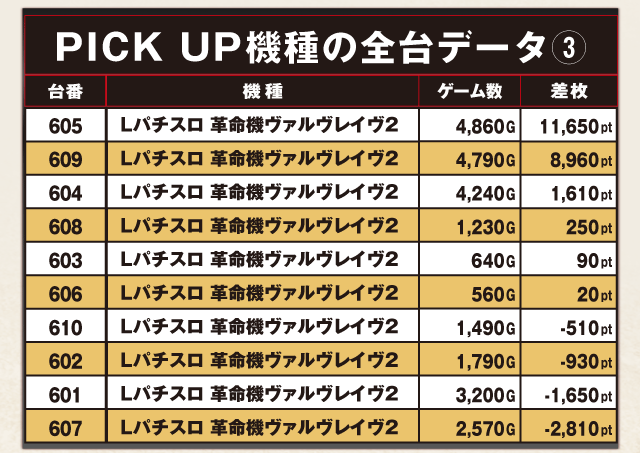 PiCK UP機種の全台データ