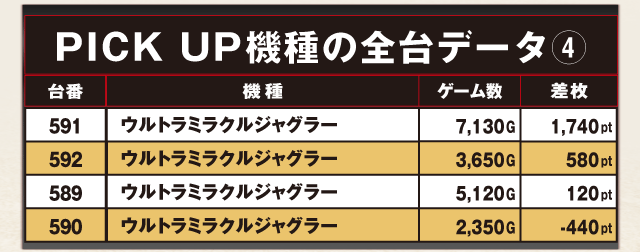 7,000G以上稼働し+1,740ptのプラスとなった591番台を始め、4台中3台がプラスとなった。