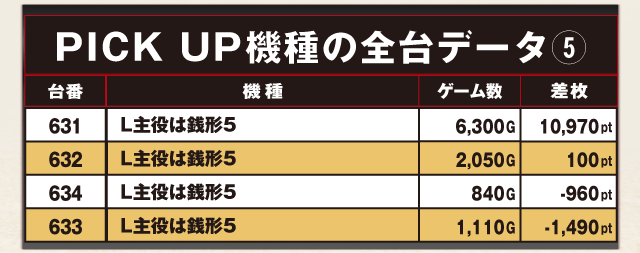 +10,970ptのハイスコアをマークした631番台は、見事この日の差枚ランキング2位に輝いた。