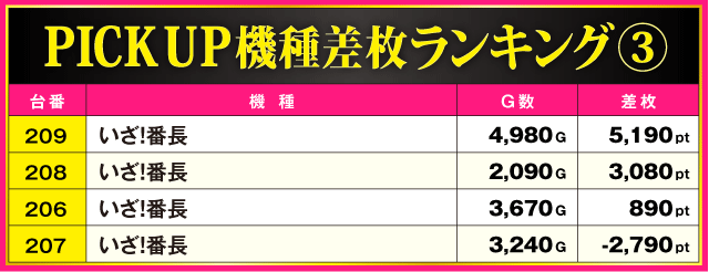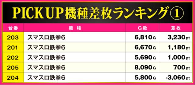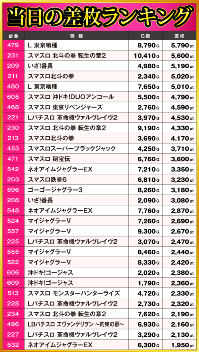 当日の差枚ランキング