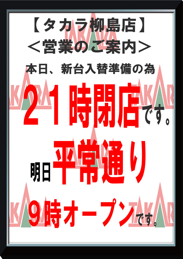タカラ柳島店のお知らせ一覧