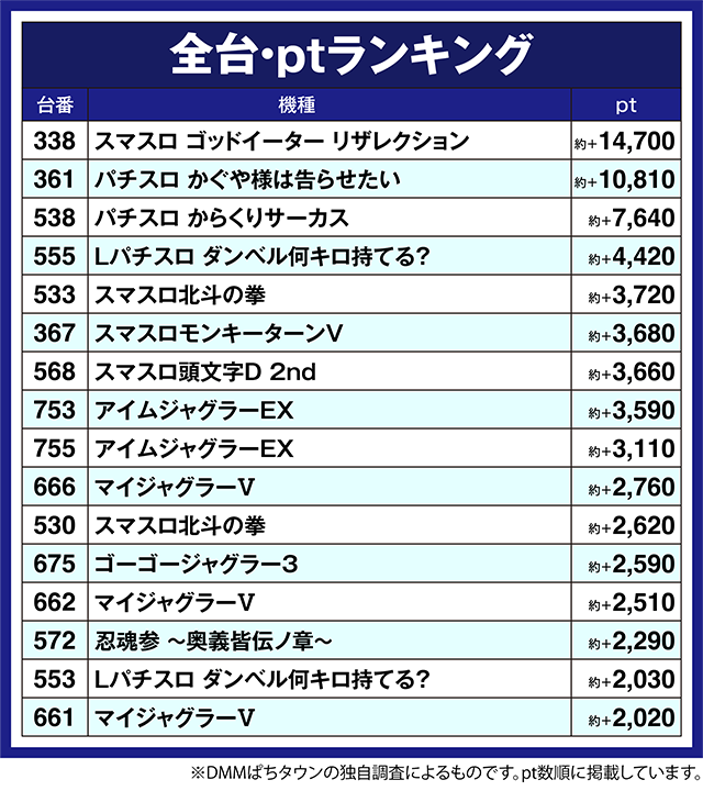 ※なお、本記事中のデータは全てDMMぱちタウンの独自調査によるものです