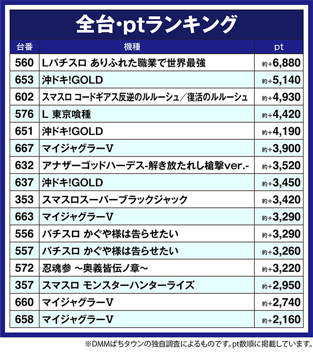 ※なお、本記事中のデータは全てDMMぱちタウンの独自調査によるものです