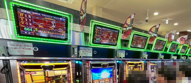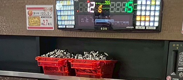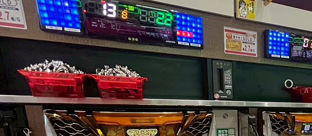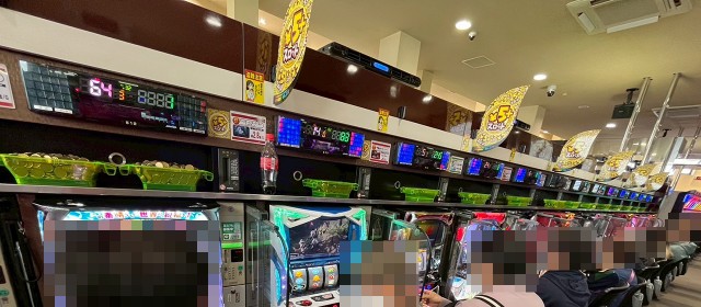 一方、この項の写真で伝わる様に[1000円/180枚]スロの稼働は高く、ドル箱を複数使用する台があったことを追記しておきたい。