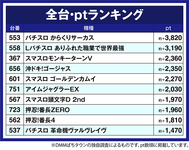「アイムジャグラーEX」の751番台も約+2,000ptを上回った。