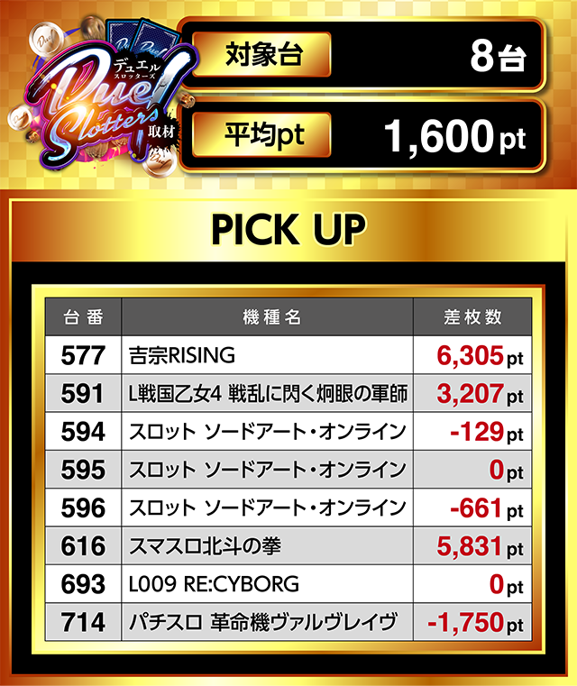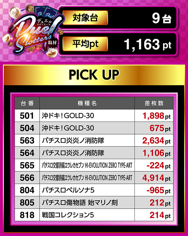 「PICK UPスマスロ」~2台が5,000ptオーバー!