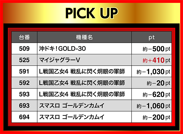 『沖ドキ!GOLD-30』からは、509番台をピックアップ