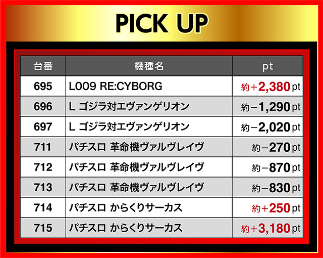 『L009 RE:CYBORG』では、695番台が約+2,380pt。