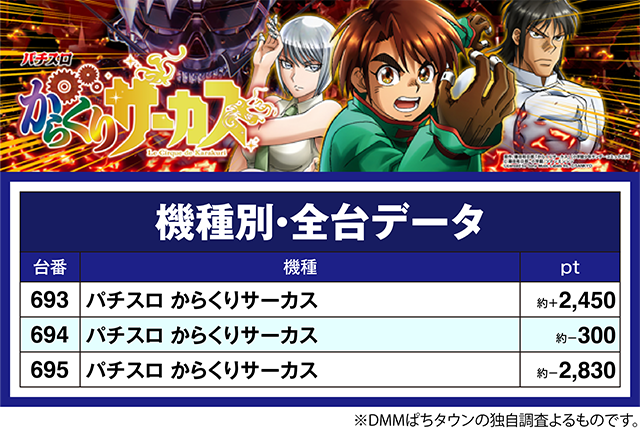 「パチスロ からくりサーカス」の693番台が約+2,500ptクラス!
