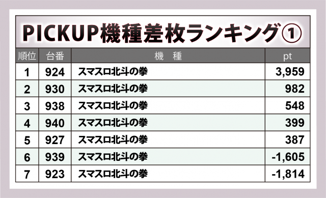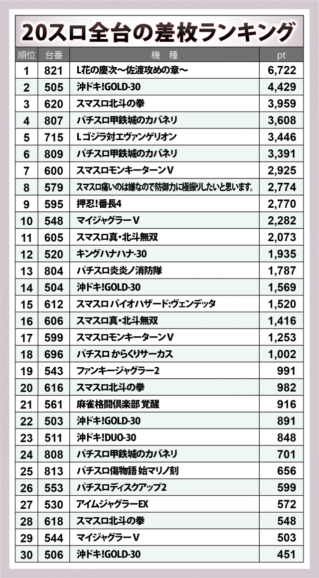 ※差枚数順に掲載しています。