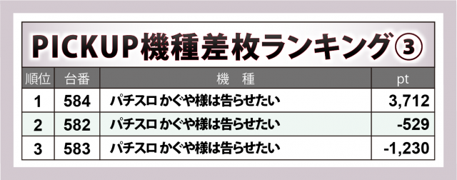 さらに『パチスロ かぐや様は告らせたい』では+3,700枚超の台が輩出されていた。