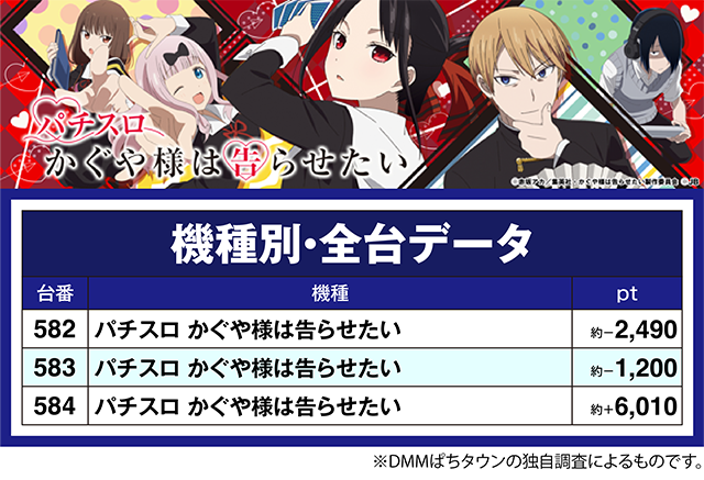 「パチスロ かぐや様は告らせたい」の584番台が約+6,000ptオーバー!!