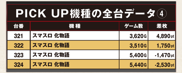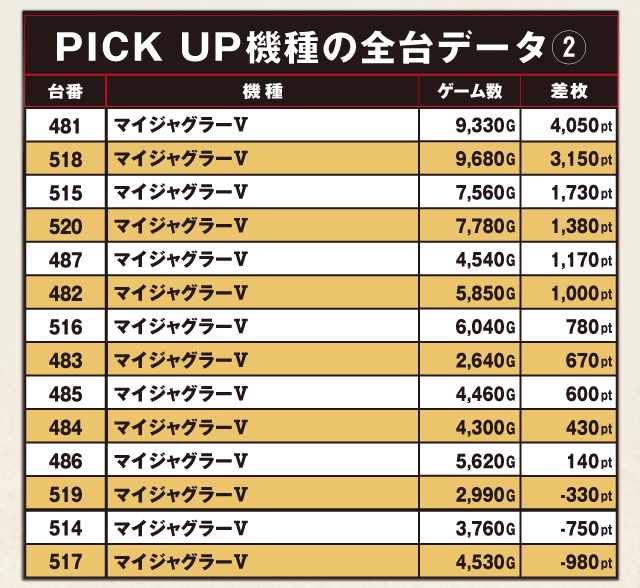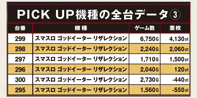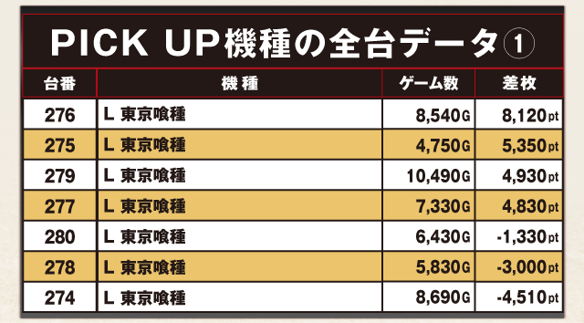 PiCK UP機種の全台データ