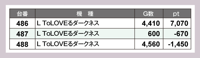 『L ToLOVEるダークネス』は3台中1台が大活躍。もう少しG数を稼いで後押ししたかったところだ。