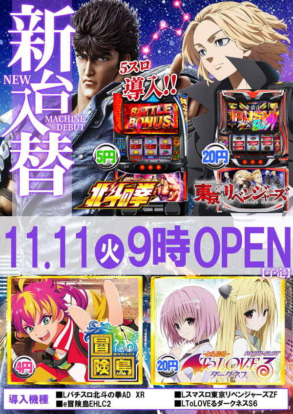 11月12日(水)『神鳥降臨』新台+オススメも注目!