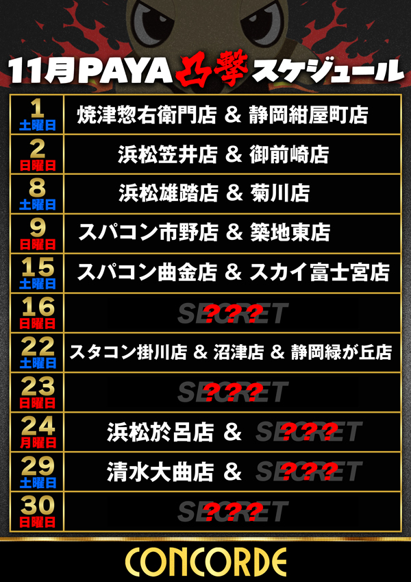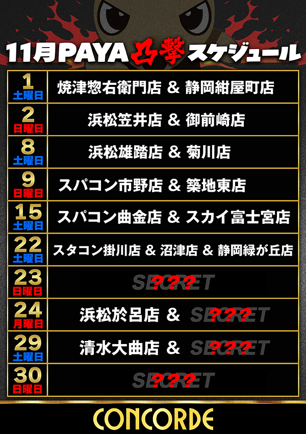 コンコルド東名店のお知らせ一覧