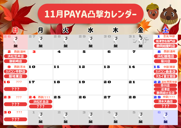 1位 11月10日(月) 2位 10月19日(日) 3位 11月9日(日)