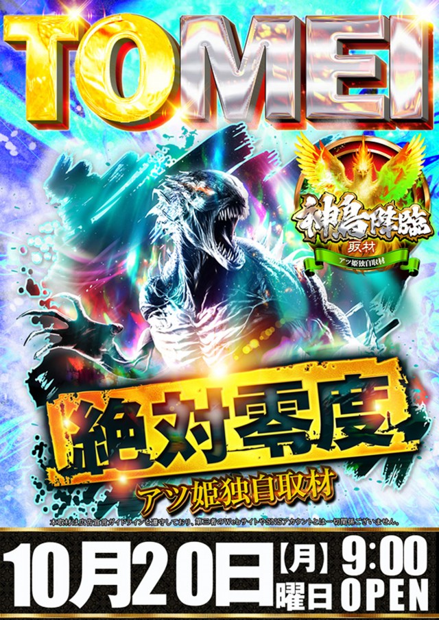 20日(月)『絶対零度』『神鳥降臨』ぜひTOMEIへ!