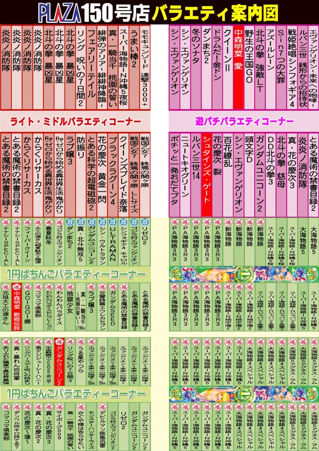 パチンコプラザ150号店の機種情報