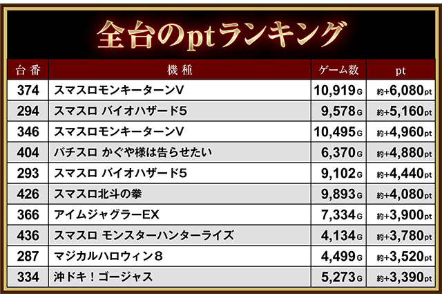 「スマスロモンキーターンV」の374番台が約+6,080pt!