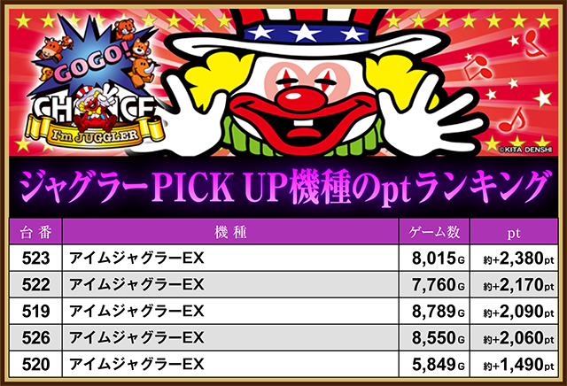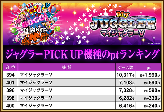 4店舗・ジャグラーPICK UP機種ptランキング
