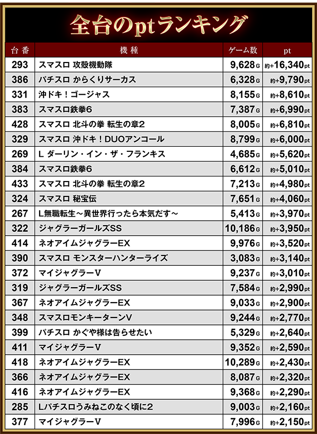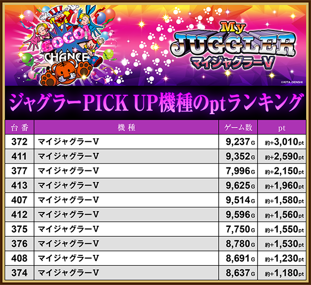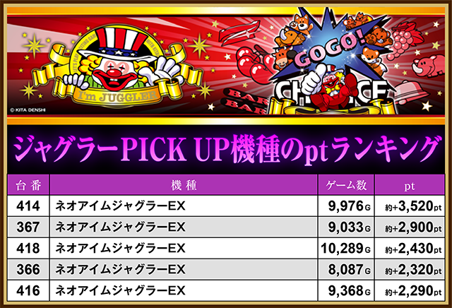 ジャグラーPICK UP機種ptランキング